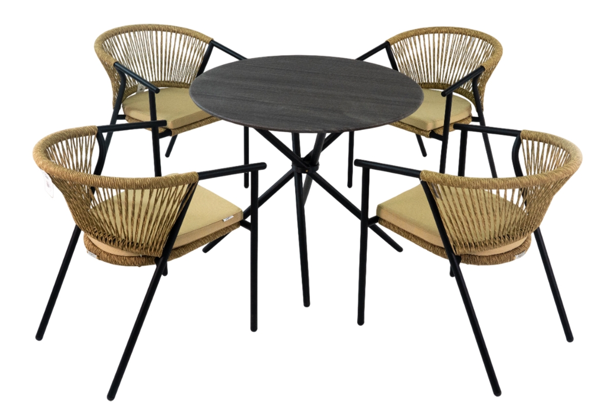 Современный и практичный комплект мебели, который идеально подходит для комфортного размещения четырех человек. Этот комплект включает в себя стол с прочной столешницей и четыре стильных плетёных стула.